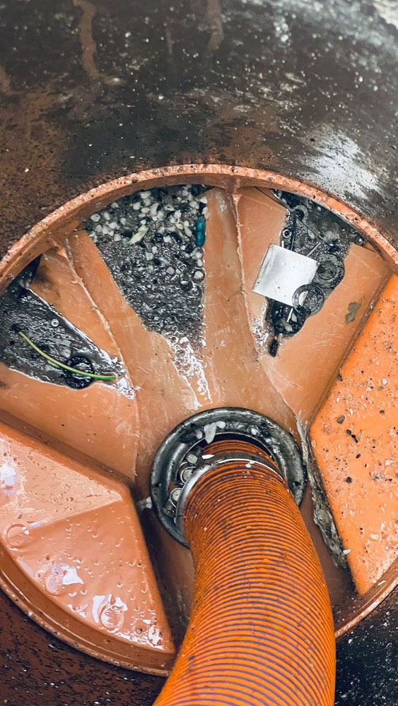 Wir kümmern uns um die Beseitigung von Verstopfungen oder Wasserstaus in Pumpenschächten und Rohren.
